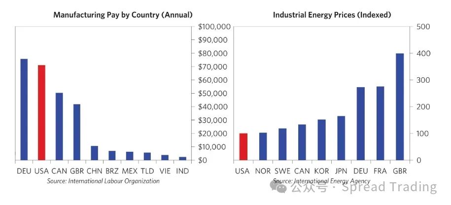 美国制造业面临的最大挑战是其高昂的生产成本,其中劳动力成本是主要驱动因素。在某些情况下,即使征收25%的关税,也难以弥合与印度等国家高达30%的生产力调整后工资差距。